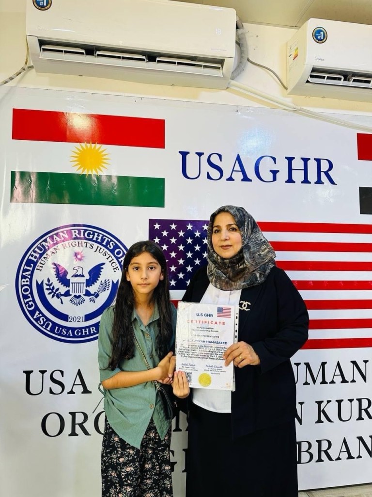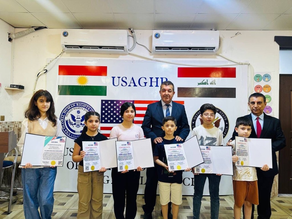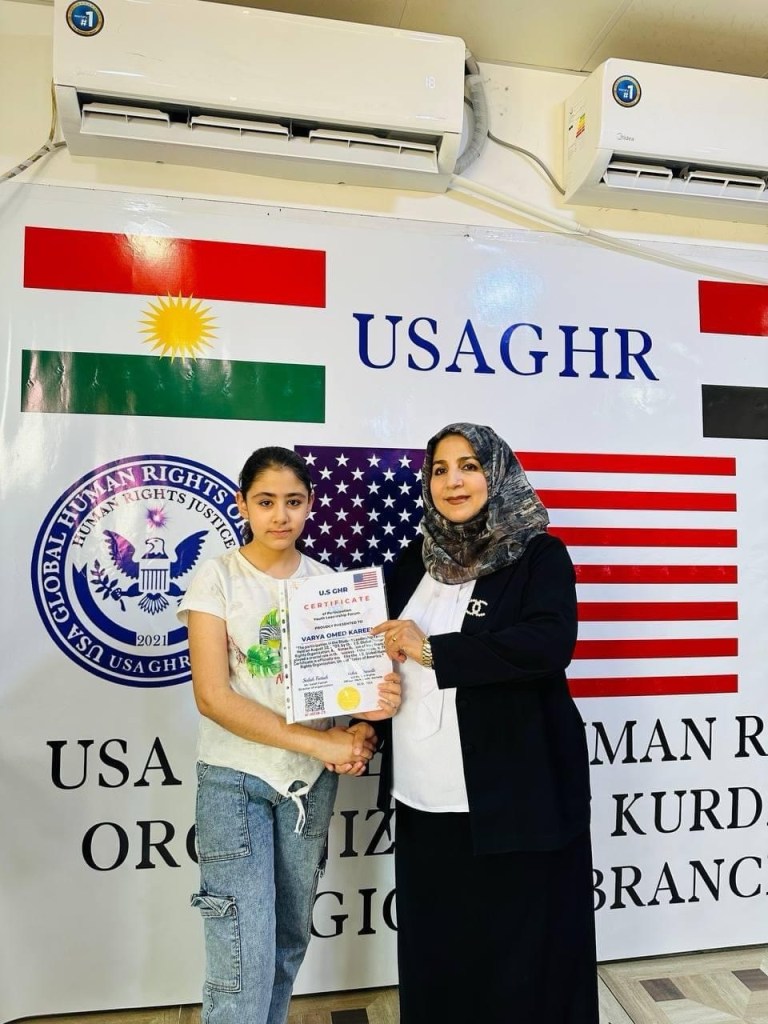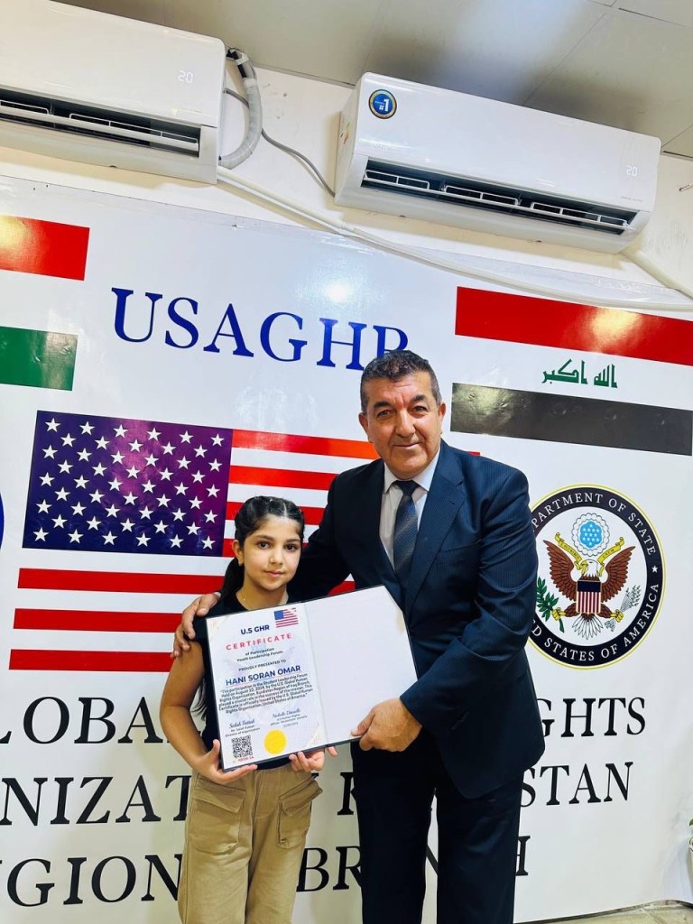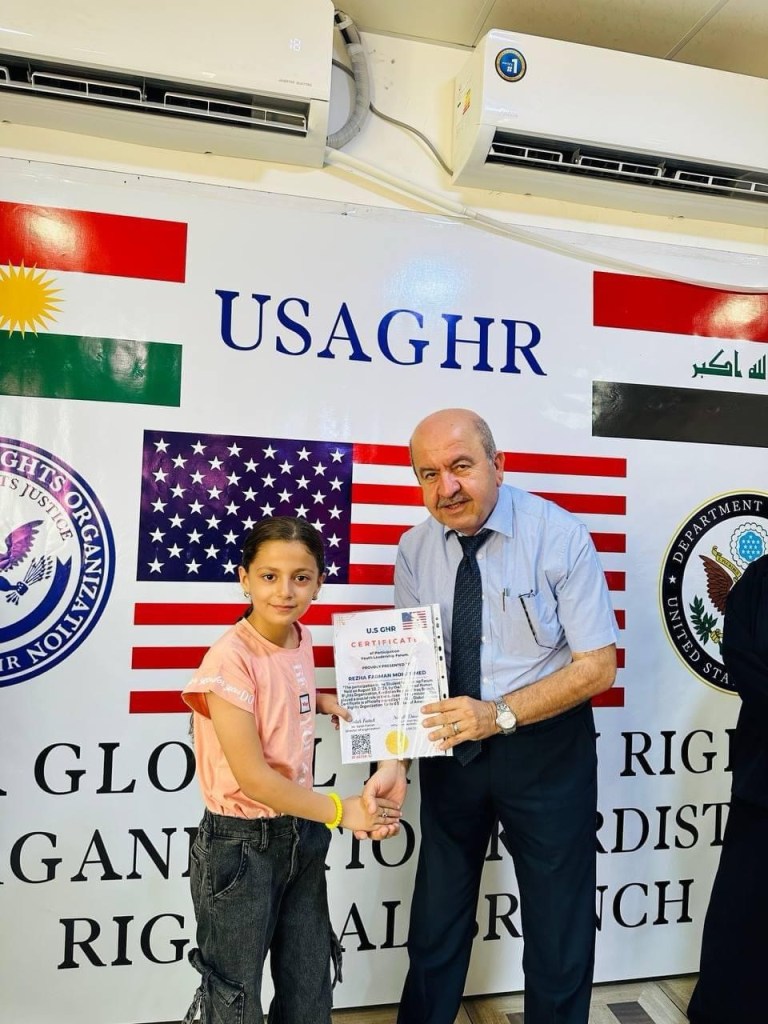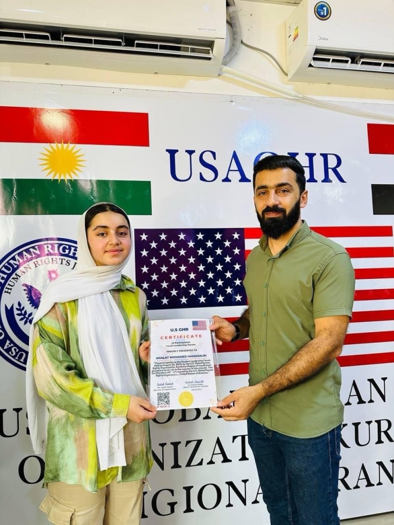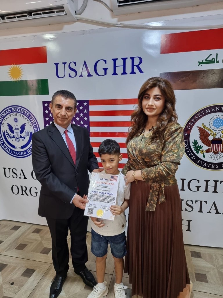 ڕێکخراوی جیھانی مافی مرۆڤ لە ولایەتە یەکگرتووەکانی ئەمریکا لقی ھەرێمی کوردستان لە چالاکیەکی نمونەییدا ئەمڕۆ2/9/2024 لە شاری دەربەندیخان بڕوانامەی سەرکردەی پێشکەش ئەو منداڵانە کرد کە بەشداری خولی سەرکردەیان کردبوو کە لە لایەن ڕاھێنەری نێودەوڵەتی دکتۆر ابراھیم جاف وترایەوە.