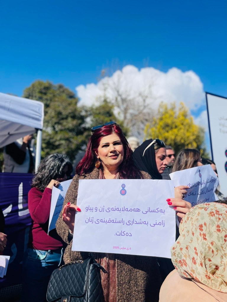 The Global Human Rights Organization – United States, Kurdistan Region Branch, in collaboration with the 8th of March Network, held a special ceremony today in front of the Public Park to celebrate International Women’s Day. The event was attended by civil society organizations, prominent figures from Sulaymaniyah, and various media outlets.